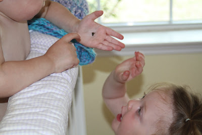 Brody was up for evaluation first and did well overall. After various tests (cognitive, fine motor, expressive/receptive language...) he scored between 22months-24months of age, just where he should be! Although he's been walking for months now, he still resembles a baby deer to a degree. He has a hard time, even on flat surfaces sometimes, with his balance and coordination. When we play outside for example, he prefers to stay on the porch, avoiding the grass or any other challenging surfaces. We had X-rays done a few weeks ago to rule out any abnormalities with his hips/gait, everything looked normal, thank goodness. Brody does have some tone issues tho, through his ankles which leads Dr. Roberts to believe it's safe to say he has VERY MILD Diplegia CP (cerebral palsy affecting the legs only). You can learn more about this particular type of CP here. This doesn't mean a whole lot to us and won't change a thing when it comes to Brody and his therapy treatments, we will continue PT through ECI and once he "graduates" from ECI(at 3 years old) he will likely need additional private therapy. Brody weighed in at 27lbs 1oz and was 33 1/4 inches tall! Friday, April 1, 2011